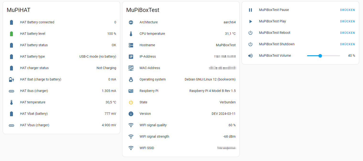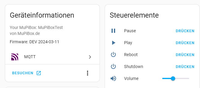 - Play / Pause / Stop / Shutdown als Befehle via MQTT funktionieren auch.